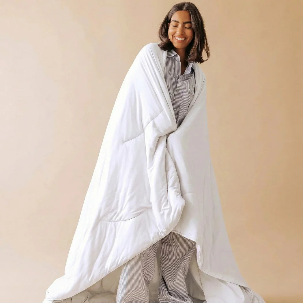 Designed with airy, breathable fill that feels plush and full like a comforter without the heavy heat.